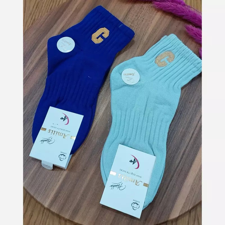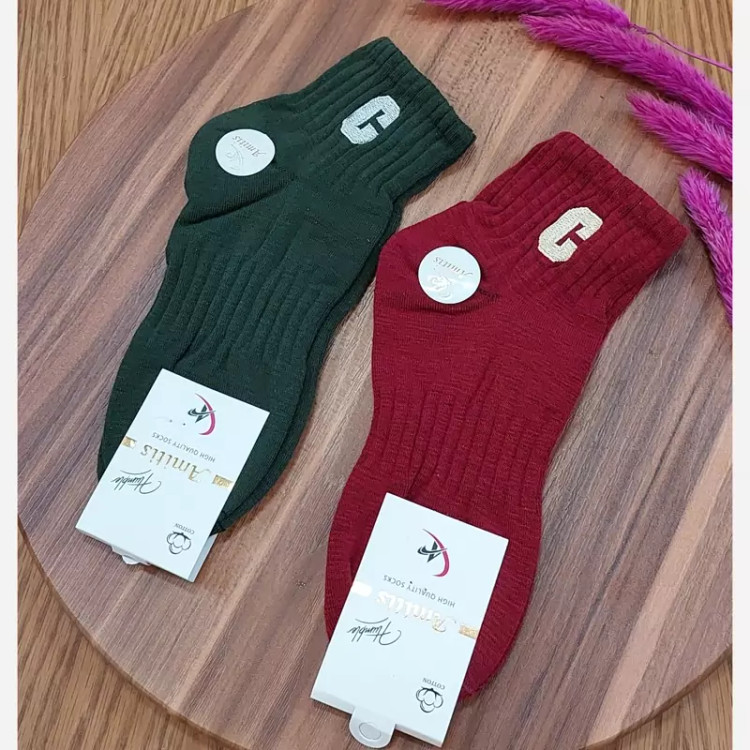 جوراب ورزشی زنانه نیم ساق رنگبندی مطابق عکس کف کش کیفیت نرم و بادوام گلدوزی شده