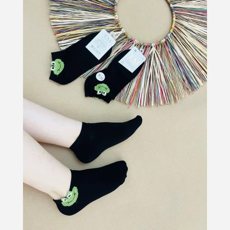 جوراب مچی زنانه جنس نخ پنبه با کیفیت طرح قورباغه مناسب سایز 36_41