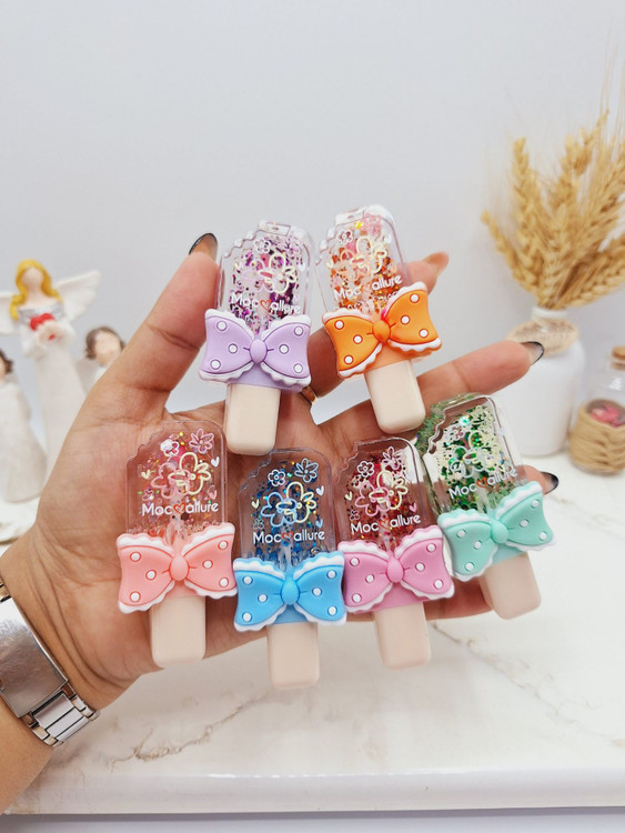لیپگلاس شاین دار طرح بستنی پاپیون دار موکالره (ارسال رنگ رندوم)