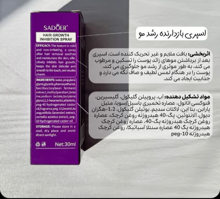 🐜 اسپری بازدارنده رشد موهای زائد مورچه سادور🐜