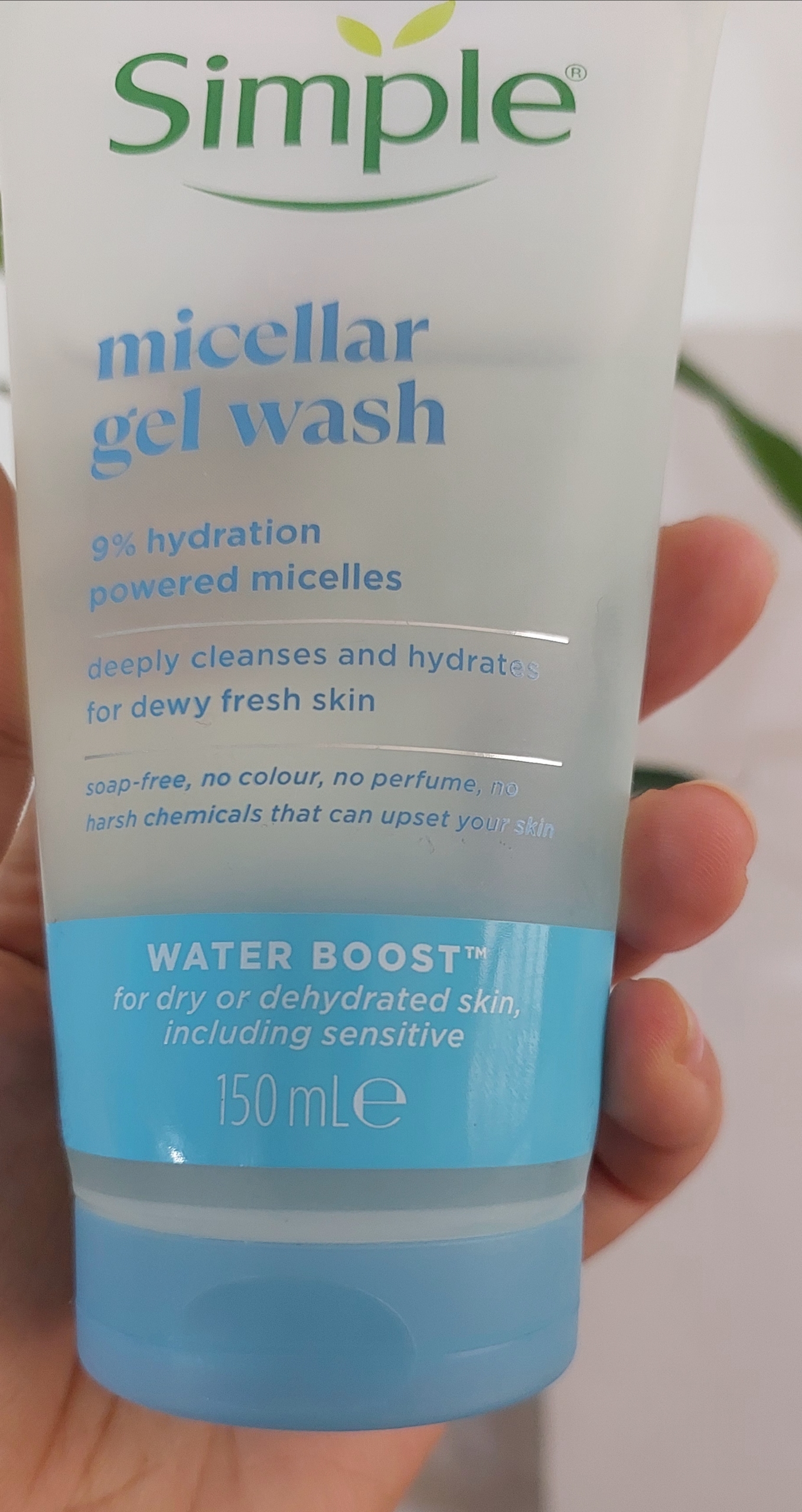 ژل میسلار سیمپل Water Boost دارای فرمول ویژه جهت پاک کردن روزانه آلودگی های پوست و آرایش به همراه رطوبت رسانی مضاعف جهت جلوگیری از احساس خشکی برای پوست های دهیدراته، خشک و حساس می باشد. شوینده صورت سیمپل حاوی ملکول های میسل جهت جذب ملایم آلودگی و ناخالصی های پوست است در نتیجه پوستی شاداب و بدون احساس خشکی و کشیدگی پس از شستشوی صورت خواهید داشت. ژل میسلار سیمپل همچنین حاوی ویتامین B5 و ویتامین E است که خاصیت آنتی اکسیدانی داشته و پوست را تغذیه میکند.