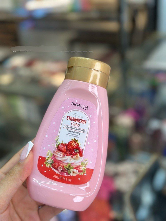 نمک حمام لایهبردار بیوآکوا با رایحه کیک توت فرنگی ۴۳۰ گرم