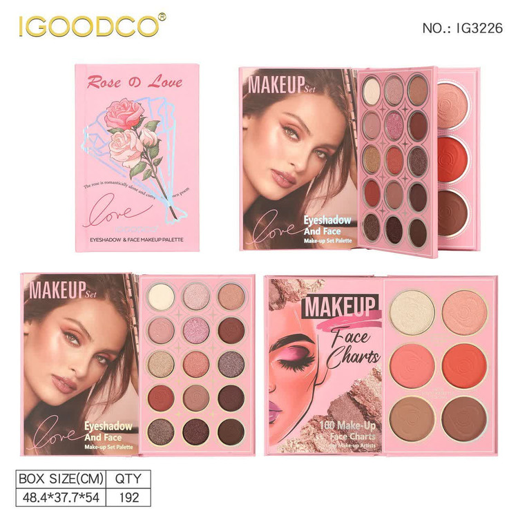 یک صفحه ۶ رنگ رژگونه و کانتور و هایلایتر یک صفحه ۱۵ رنگ سایه های مات و شاین