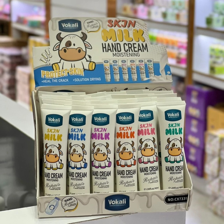کرم دست شیر گاو VOKALI جلوگیری و رفع خشکی پوست جلوگیری از چین و چروک مرطوب کننده آبرسان نرم کننده مناسب انواع پوست مناسب خانم ها و آقایان در تمام سنین بدون چرب اضافی حجم 40 میل